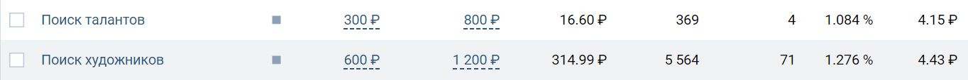 Переходы: 75 Стоимость перехода: 4 руб. Потрачено 331, 59 руб. Обращений: 10 человек бесплатно предложили свои работы Стоимость лида: 33 руб.